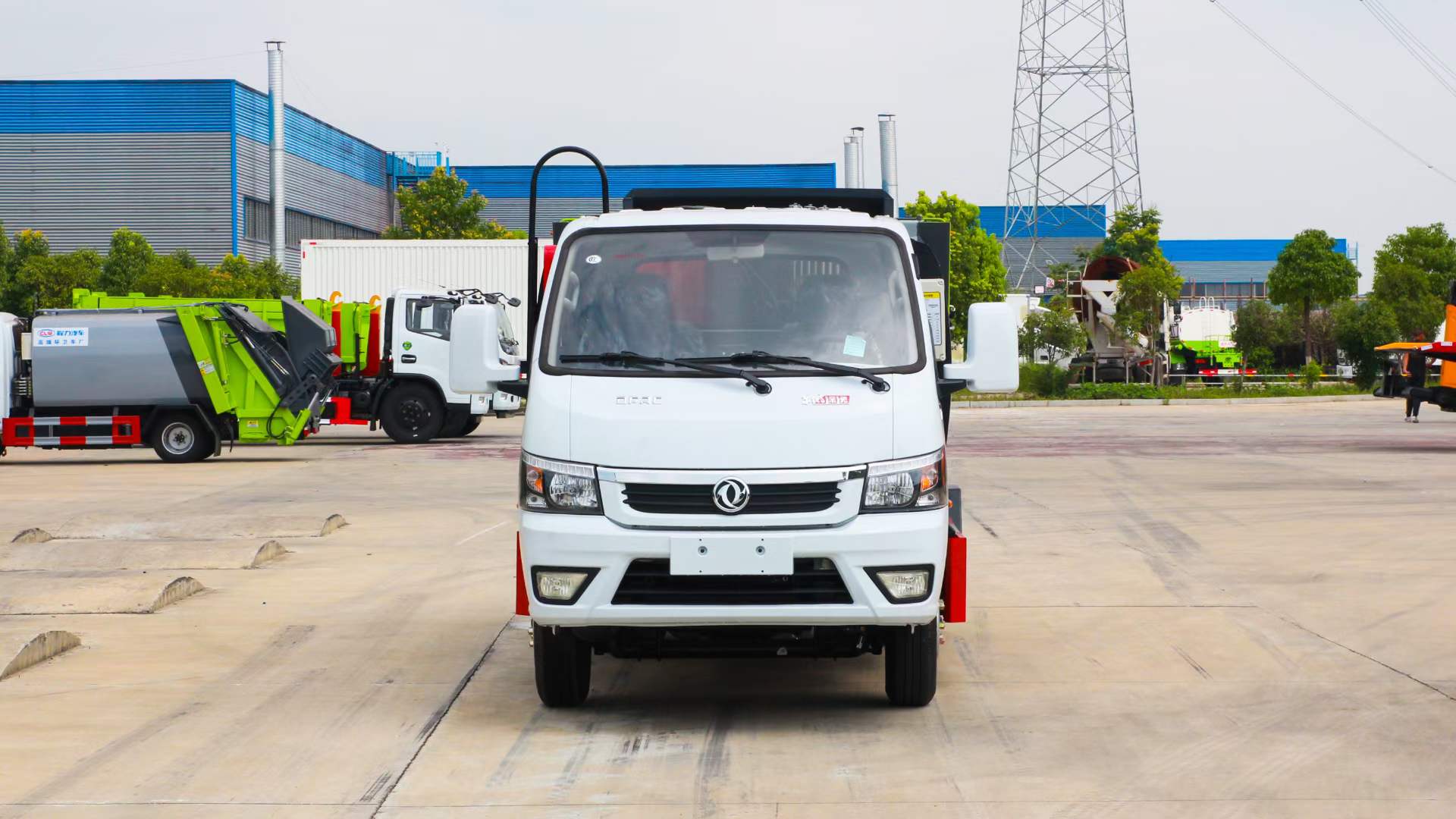 國六3方東風小霸王勾臂垃圾車 底盤配置:柳州五菱83 KW,113馬力發(fā)動機,? 185真空胎? ,5檔,油剎,2700軸距,帶原廠空調(diào)、原廠取力器.