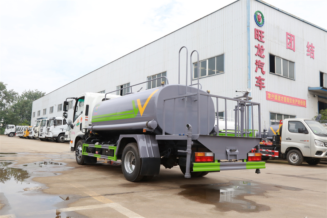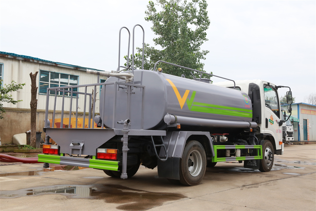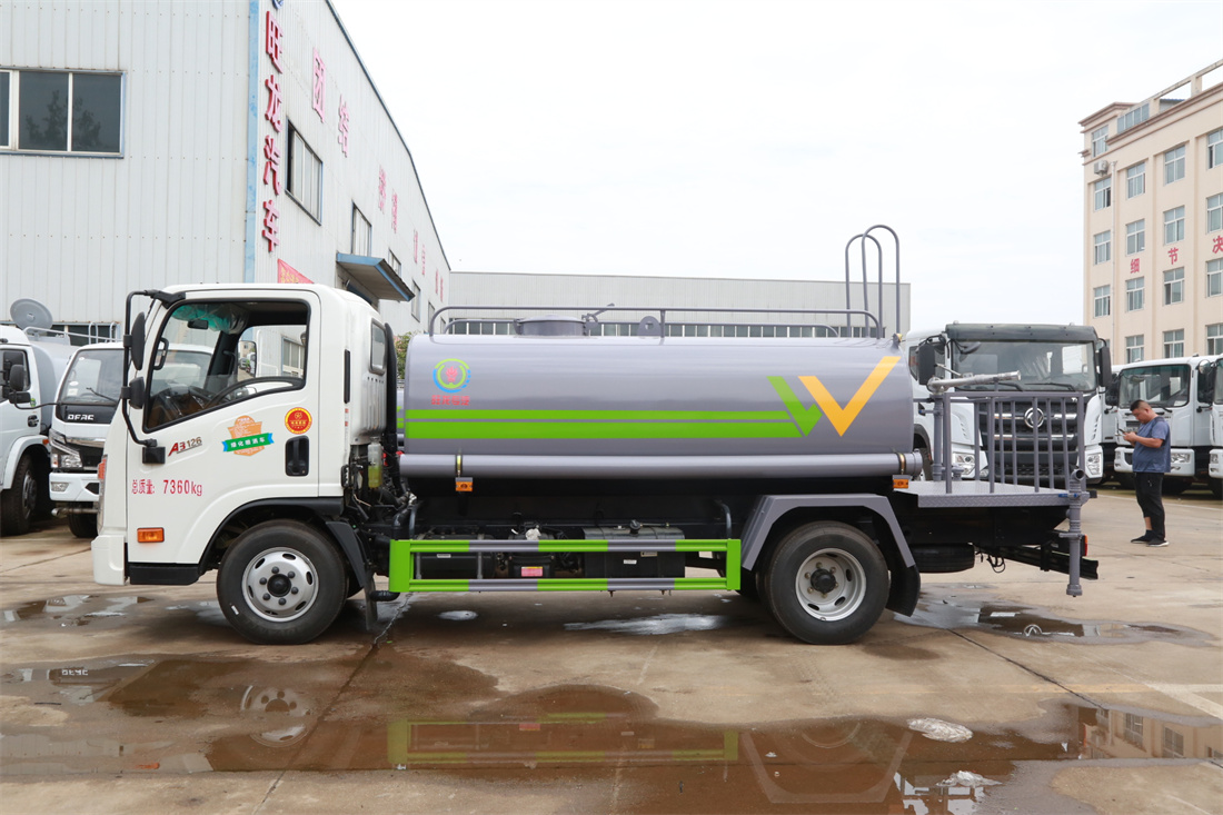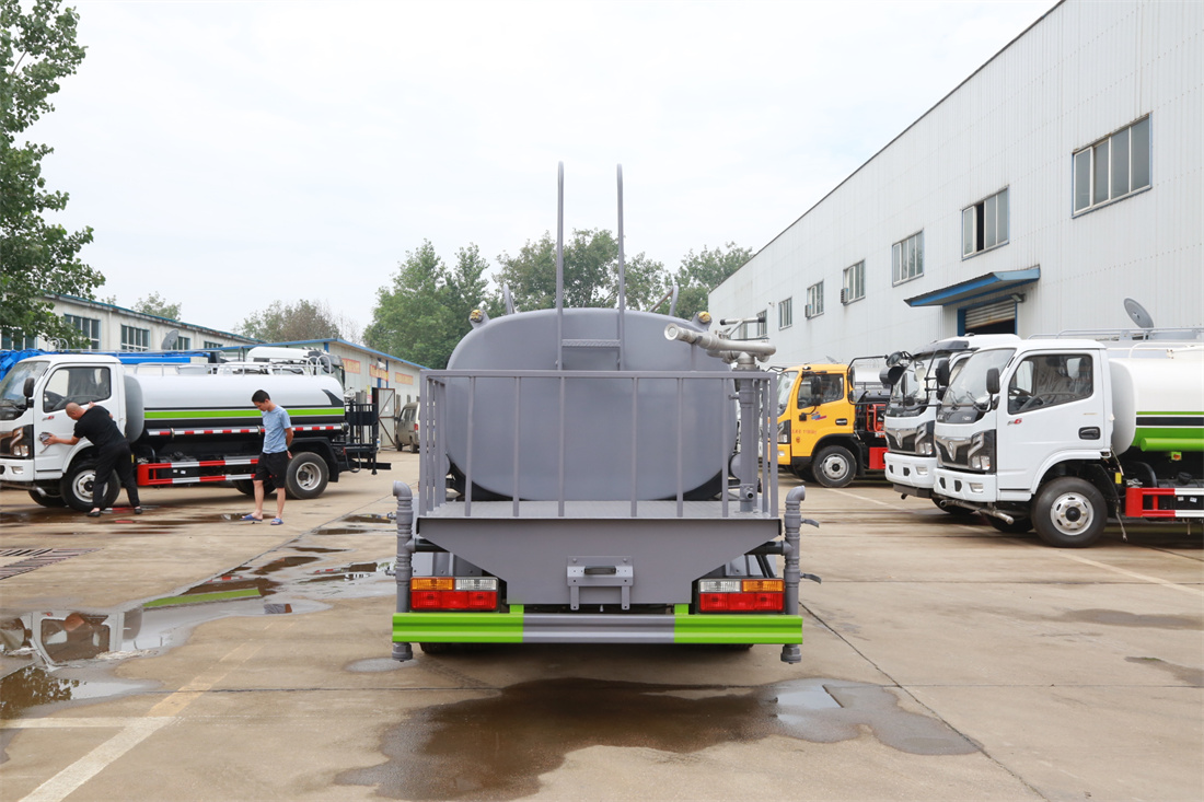 灑水車前裝有鴨形噴嘴或圓頭沖嘴,后面裝有圓柱開灑水噴嘴或蓮蓬頭噴嘴,后部有一工作平臺,裝配有水炮。后部還可裝8個(gè)噴嘴(選裝)。