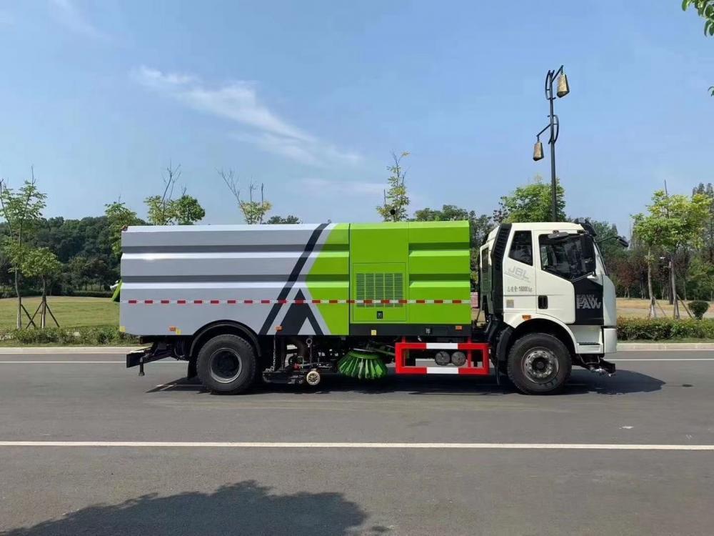 洗掃潔凈度高,該車型齊全的功能解決不同路面環境的作業,一次作業洗掃效率達98%以上,前沖功能、洗掃功能、路沿清洗功能、后噴霧功能、低壓沖洗功能以及采用的吸盤+左右側噴桿結構,路面、溝縫、彎道處、路沿上等處的灰塵、垃圾均能處理干凈,確保環境干凈、整潔。