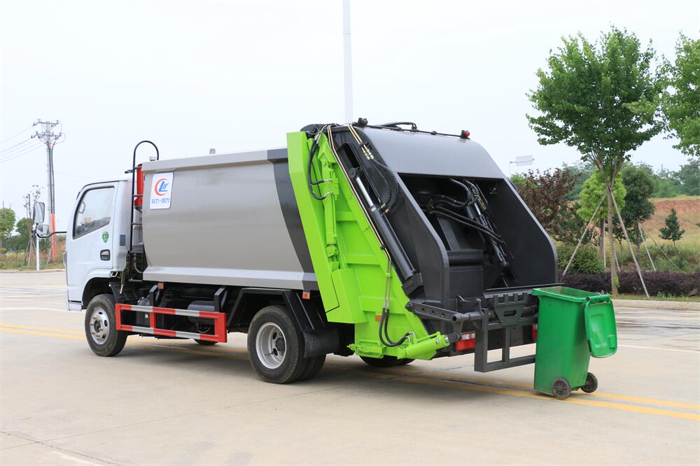 上裝配置:垃圾箱容積:6方,新款平面弧形廂體,廂體材料為武鋼優質碳鋼,PLC一鍵操作**,手電一體操作模式,兩側雙電控,帶駕駛室內操作,底板支撐加強,雙向壓縮,開放式易清潔污水箱。壓縮式垃圾車采用機電液一體化技術,借助機、電、液聯合自動**系統、電腦**、手動操作系統,通過填裝器和推鏟等專用裝置,實現垃圾倒入、壓碎或壓扁、強力裝填,把垃圾擠入車廂并壓實和推卸,污水全部進入污水廂,解決了垃圾運輸過程中的二次污染的問題。壓縮式垃圾車具有自動反復壓縮以及蠕動壓縮功能,壓縮比高、密封性好、裝載量大﹑操作方便、環保性好﹑整車利用功率高等優點。作業自動化,垃圾收集方式簡便、高效。后翻轉機構選裝:1、掛塑料桶式翻轉機構;2、掛鐵桶式翻轉機構;3、擺臂式翻轉機構; 4、簸箕斗式翻轉機構。