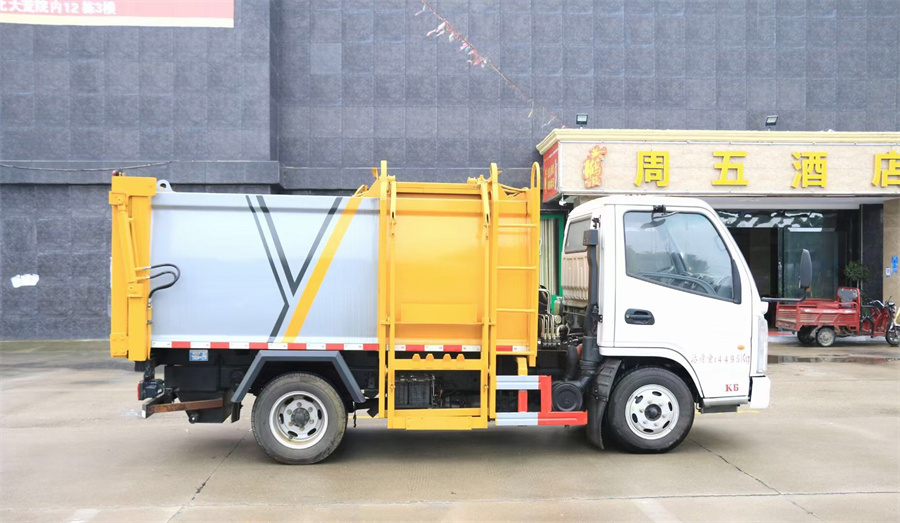 5方掛桶垃圾車-凱馬5方藍(lán)牌側(cè)裝壓縮掛桶垃圾車廠家