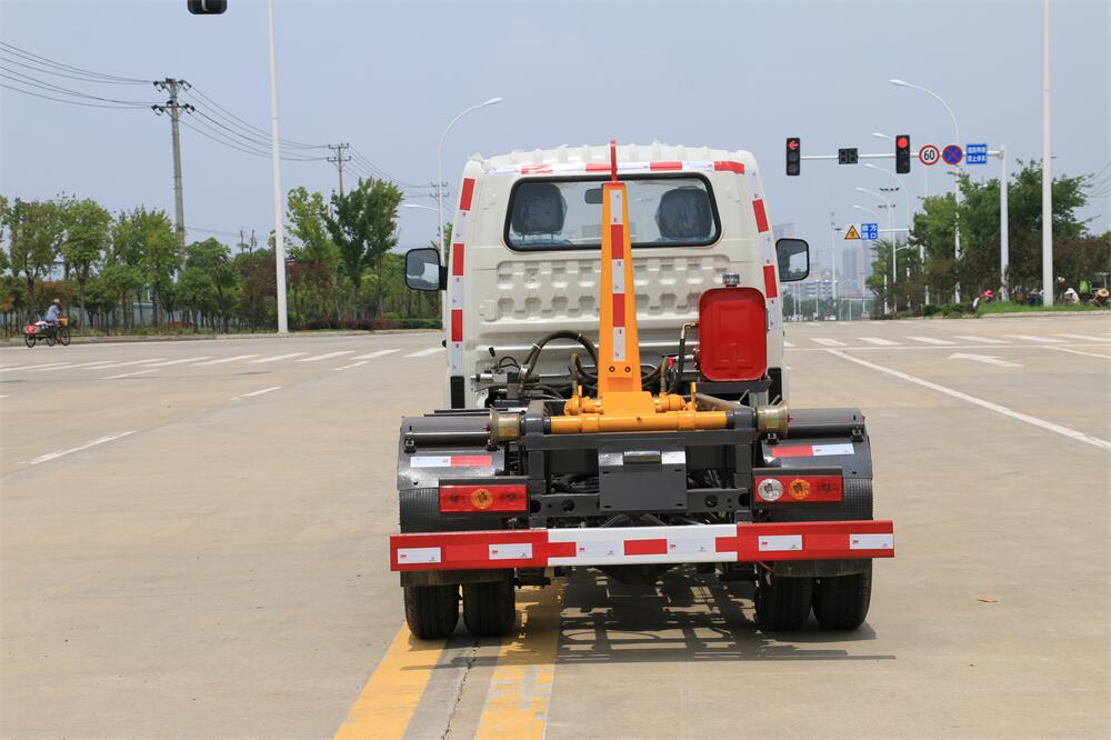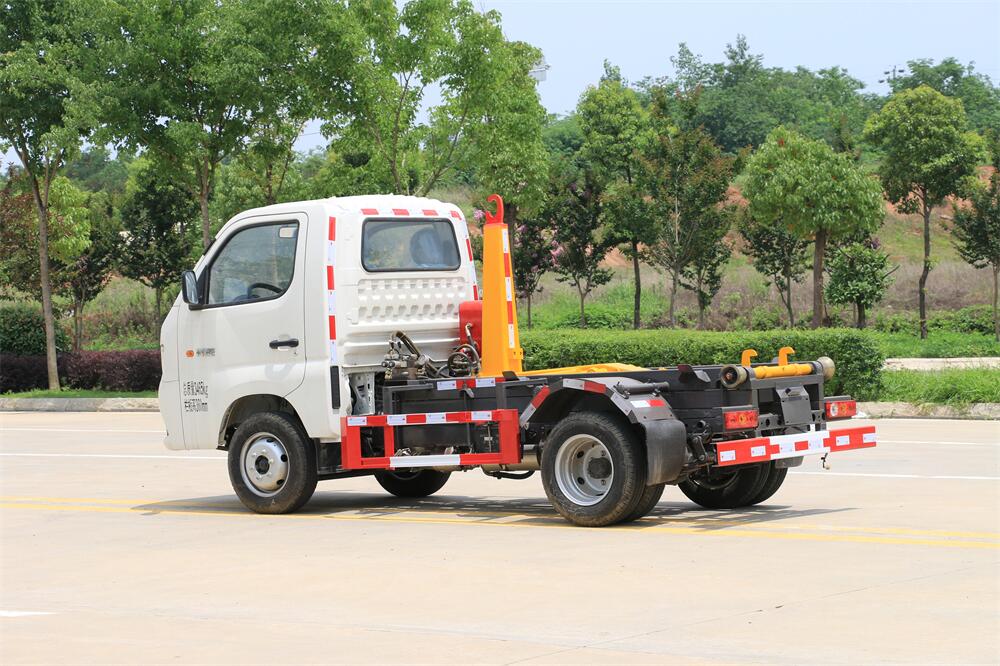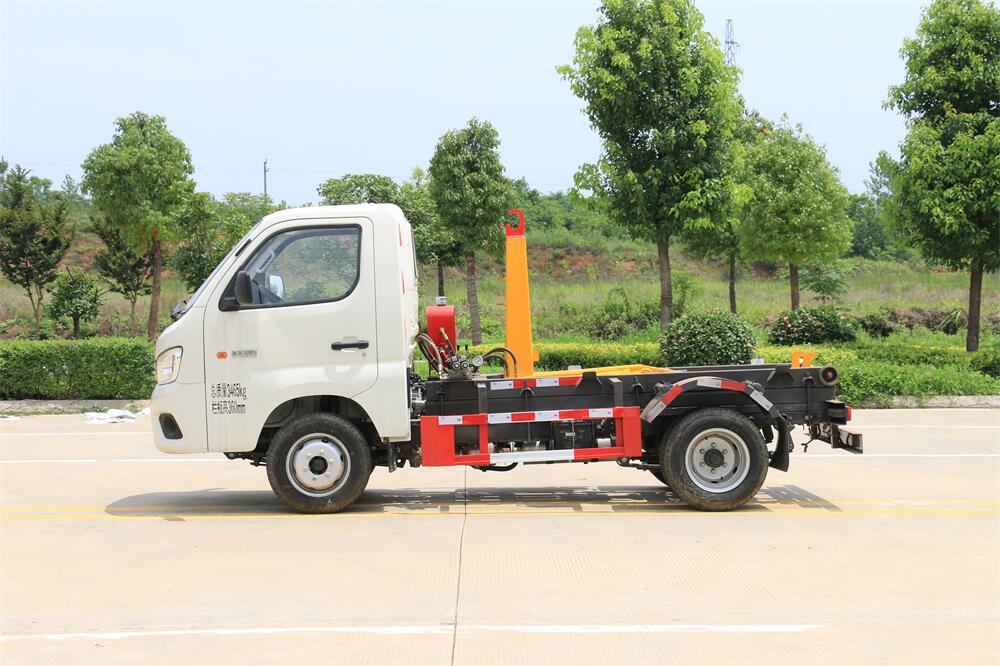 勾臂式垃圾車(車廂可卸式垃圾車)介紹: 車廂可卸式垃圾車又叫拉臂式垃圾車,是一種采用高新設(shè)計(jì)可伸縮的鉤臂,實(shí)現(xiàn)垃圾廂的二次吊裝,自吊上放下,可自行傾倒垃圾的環(huán)衛(wèi)設(shè)備。 拉臂式垃圾車結(jié)構(gòu)簡單,操作穩(wěn)定方便,裝卸效率高,機(jī)械化程度高,節(jié)省人力。鉤臂垃圾車一車可帶多個垃圾廂,在裝卸的運(yùn)輸過程中可有效地避免二次污染。 拉臂垃圾車采用高新設(shè)計(jì)可擺動的鉤臂,垃圾箱由框架、開啟油缸、滑輪、后門和若干加強(qiáng)框架與鋼板焊接而成。調(diào)換貨廂快捷方便,貨廂上帶蓋(倒垃圾時可翻開),鉤臂垃圾車?yán)鴰w可選用碳鋼、不銹鋼材質(zhì)、內(nèi)部采取環(huán)氧樹脂防腐處理,改裝部分與原車底盤為可分離式,維修方便且保持了原車的機(jī)動性及行駛性能。