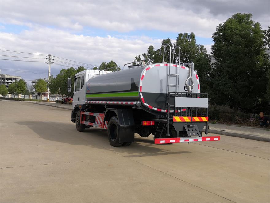 灑水車前裝有鴨形噴嘴或圓頭沖嘴,后面裝有圓柱開灑水噴嘴或蓮蓬頭噴嘴,后部有一工作平臺,裝配有水炮。后部還可裝8個噴嘴(選裝)。