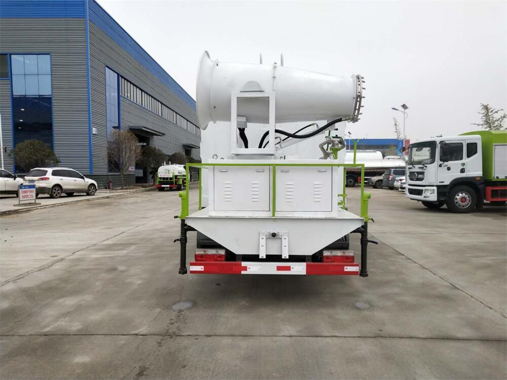 上裝配置:罐體容積為 8立方,選配風(fēng)送式霧炮機(jī)組射程30米、40米、50米、60米、80米、100米、120米霧炮,罐體鋼板為4mm碳鋼Q235材質(zhì),罐內(nèi)隔板具有防波作用,以減輕汽車行駛時(shí)罐體液體沖擊,罐體及整車外形尺寸按照公告。帶大功率專用灑水泵,泵可自吸自排,整車前沖、后灑、側(cè)噴、帶65消防接口,后平臺(tái)配CLW-50、CLW-60、CLW-80、CLW-100、CLW-120型風(fēng)送式霧炮機(jī)組;罐體前封頭配大功率柴油發(fā)電機(jī)組;前封頭帶水位計(jì),后平臺(tái)主管路帶1寸澆花接口,后爬梯。帶兩根輸水管及陰陽端。罐體顏色:銀/灰/綠,罐體兩側(cè)噴“多功能抑塵車”字樣,貼反光標(biāo)示。