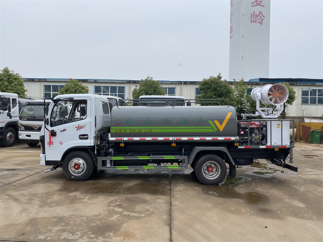上裝配置:罐體容積 5立方,風送式霧炮機組30米,40米選擇,罐體采用國標Q235碳鋼材質(zhì),罐體厚度4MM,前后封頭5MM加厚型,罐體內(nèi)雙層隔板具有防波蕩作用,以減輕汽車行駛時罐內(nèi)液體沖擊;灑水車整車及外形尺寸嚴格按照**機動車公告制作而成;裝配大功率專用灑水泵,前沖、后灑、側(cè)噴、后平臺帶綠化灑水炮,灑水炮可全方位旋轉(zhuǎn),可連續(xù)調(diào)成直沖狀、大雨、小雨、毛毛雨;配消防接口,自流閥,濾網(wǎng),帶自吸自排功能。前封頭帶水位計,后平臺主管路帶1寸澆花接口,后爬梯,帶1個消防接頭,帶1個自流閥,1個過濾裝置,其余標配。
