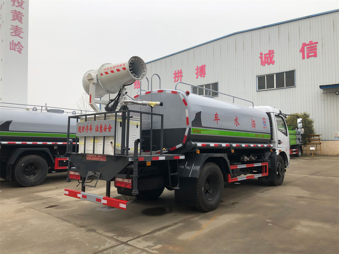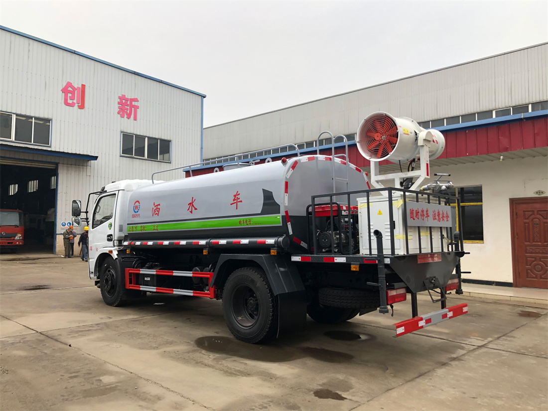 上裝配置:罐體容積 9立方,風送式霧炮機組30米,40米選擇,50米霧炮,罐體采用國標Q235碳鋼材質,罐體厚度4MM,前后封頭5MM加厚型,罐體內雙層隔板具有防波蕩作用,以減輕汽車行駛時罐內液體沖擊;灑水車整車及外形尺寸嚴格按照**機動車公告制作而成;裝配大功率專用灑水泵,前沖、后灑、側噴、后平臺帶綠化灑水炮,灑水炮可全方位旋轉,可連續調成直沖狀、大雨、小雨、毛毛雨;配消防接口,自流閥,濾網,帶自吸自排功能。前封頭帶水位計,后平臺主管路帶1寸澆花接口,后爬梯,帶1個消防接頭,帶1個自流閥,1個過濾裝置,其余標配。