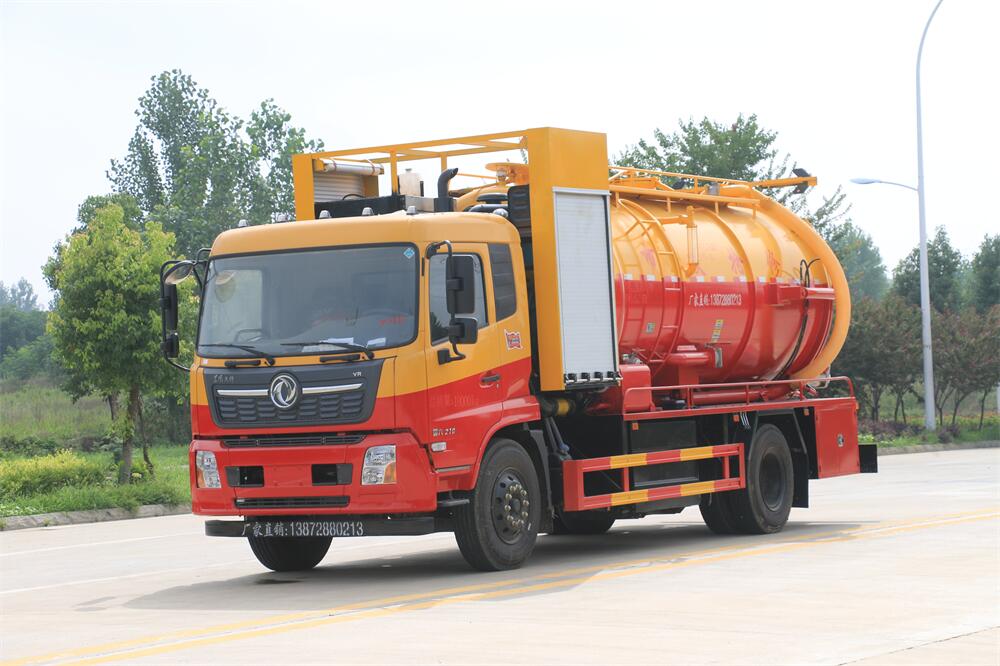 15方15方清洗吸污車-東風(fēng)天錦15方10+5清洗吸污兩用車-帶副發(fā)動(dòng)機(jī)圓罐紅黃色