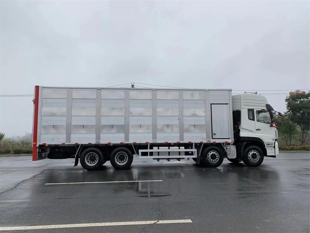 總質量31噸,整備質量15.5噸,額定載質量15.3噸,整車長度11.8-12米,寬度2.5-2.55米,高度3.9-3.98米,貨箱長度8.3-9.3米,箱體鋁合金制作,上中下三層,帶噴淋,喂食功能,可開關側窗,高轉速防風通風換氣扇。后部帶液壓升降尾板,可遠程**。副車架部分采用高強度鋼,能更好應對顛簸路面。帶一套備用發電機。配備冷暖空調,采用全新通風設計,保證前后溫度一致。空氣清新,恒溫,有效保證畜禽成活率。設計合理,堅固耐用,箱體內部清洗方便,無死角,無夾縫。讓消毒更徹底。