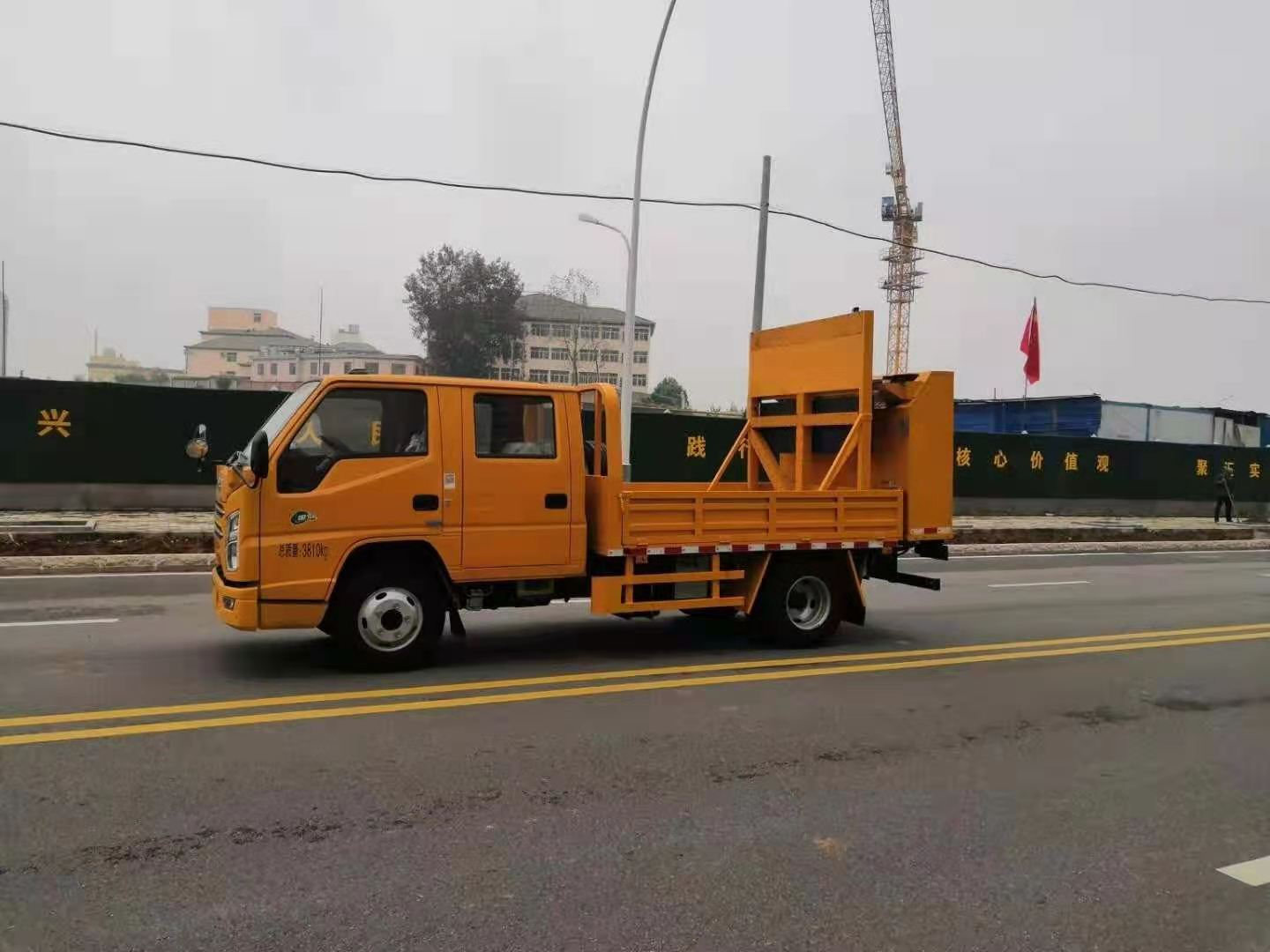 四,駕駛室后部裝有吊機(jī),增加整車**功能,可用于客戶對(duì)施工中的重物進(jìn)行吊運(yùn)。