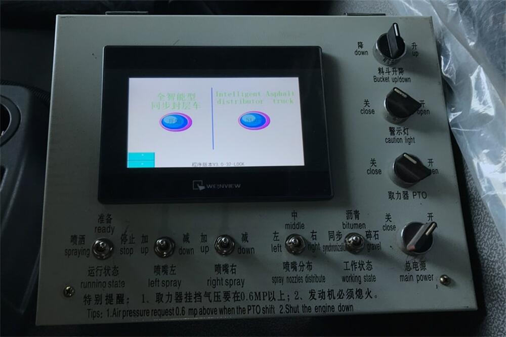 4、后雙橋同步碎石封層車(chē)完全采用電氣**,自動(dòng)化程度高,,能**的計(jì)算出設(shè)備在施工過(guò)程中瀝青噴灑量和石屑撒布量的多少;