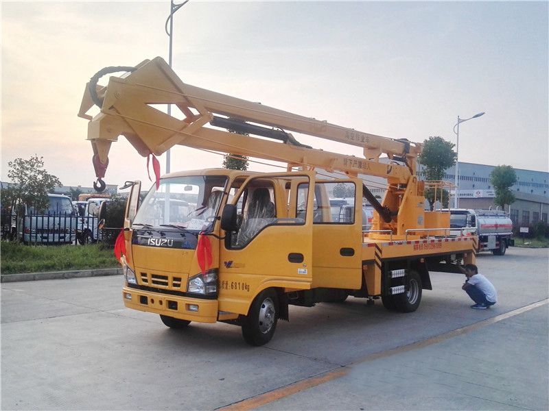 | 其他 | 該車前伸為1340mm。防護材料:Q23**碳鋼,連接方式:左右側面及后下部防護均采用焊接連接,后部防護斷面尺寸(mm) :180×50,后部防護離地高度(mm) :410。ABS型號為:APG3550500A4,生產企業為:浙江亞太機電股份有限公司。該車可選裝帶電控操作箱。專用裝置:吊臂,主要用于高空作業,進行維修、安裝、清洗、攝影、造船、化工、電力、剪枝、更換路燈及其他工程搶修作業。 | ||