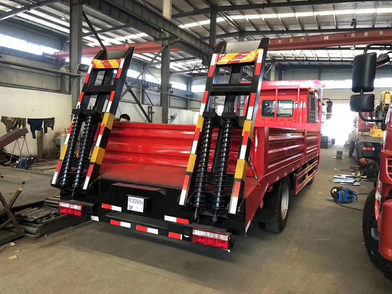 上裝采用5毫米花紋鋼板,120*120方鋼做橫梁,加強(qiáng)型雙爬梯.可定做液壓爬梯,可承載15噸以下挖機(jī)。也可加裝絞盤(pán),可拉事故車(chē)等。公告拓展有雙節(jié)爬梯公告,可做雙節(jié)爬梯拉叉車(chē),壓路機(jī)等鉆井設(shè)備!